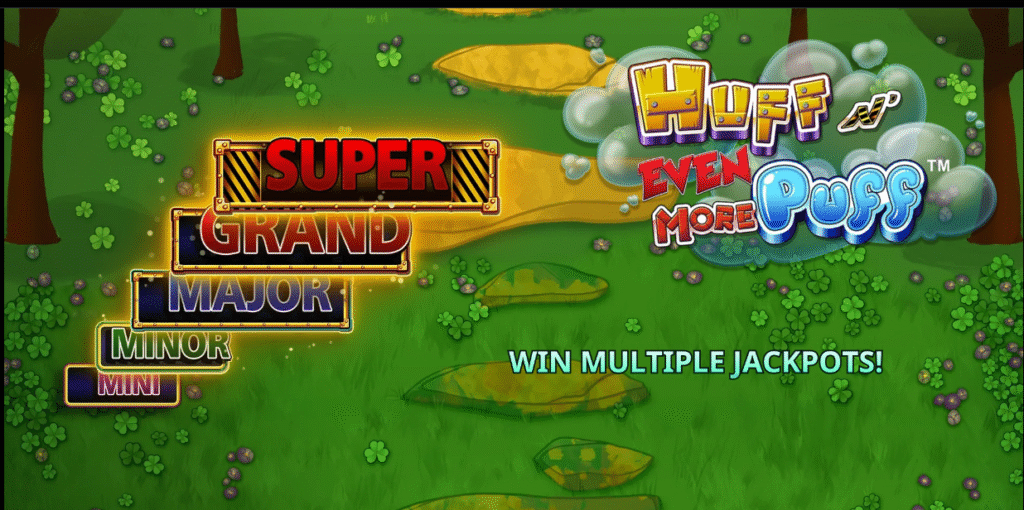 Jackpots are listed on the left side of the screen when you open Huff N' Even More Puff online slot. There are different tiers of bonuses included in progressive jackpots, making for an exciting user experience that can unlock these jackpots on any spin.