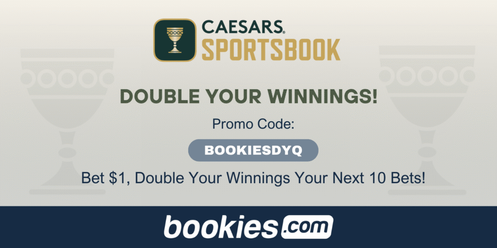 With the Caesars Sportsbook Promo Code BOOKIESDYW, new customers double their winnings in bonuses after placing a $1 bet on any sport!
